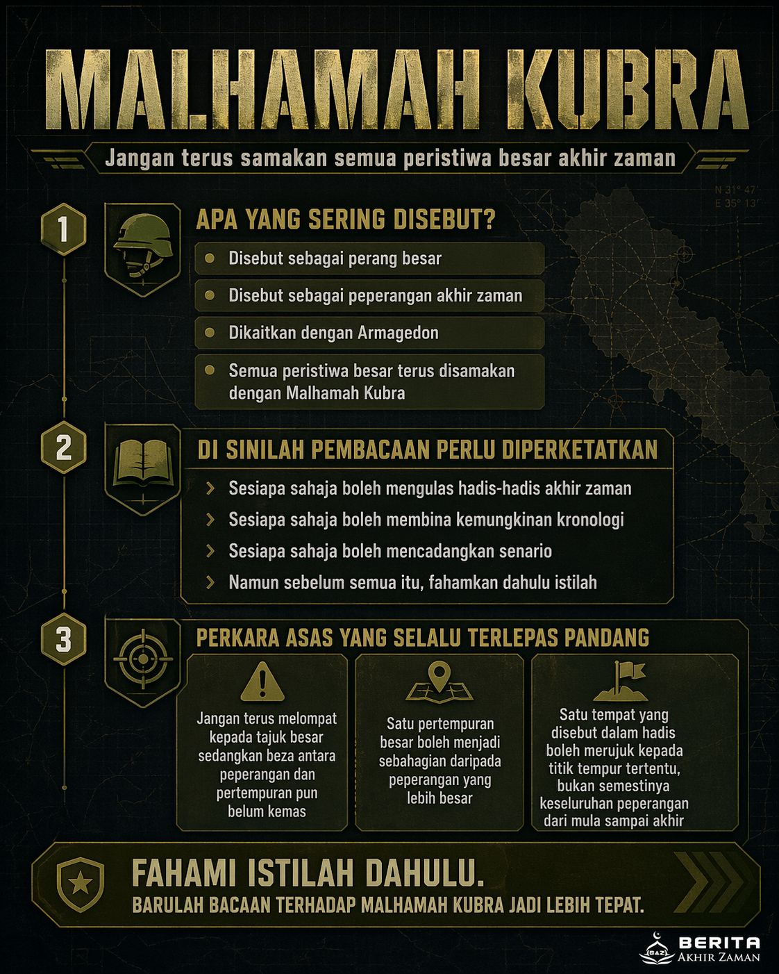Persoalan ini bukan soal istilah semata-mata. Ia menentukan cara kita menyusun kronologi, membaca lokasi, memahami pergerakan pasukan dan menilai kedudukan sesuatu peristiwa dalam peta akhir zaman. Jika asas istilah sudah tersalah, maka seluruh kefahaman selepas itu boleh tersasar.