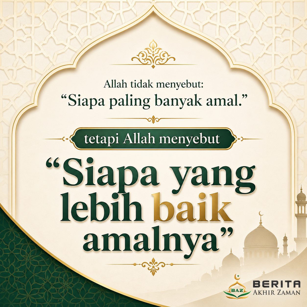 Allah menyebut bahawa manusia diuji untuk melihat siapa yang paling baik amalannya, bukan sekadar siapa yang paling banyak amalannya.