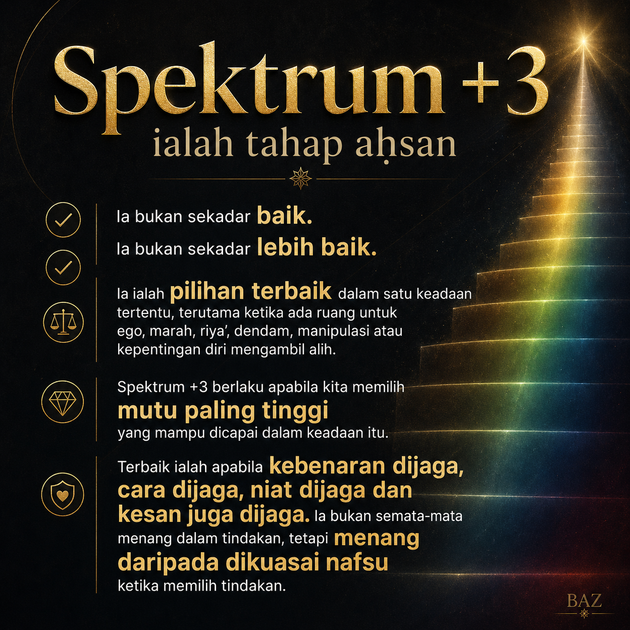Di sinilah asas teknikal +2 terbina. +2 muncul apabila kita tidak hanya melakukan yang wajib atau yang patut, tetapi memilih pilihan yang lebih lapang dan lebih mulia.