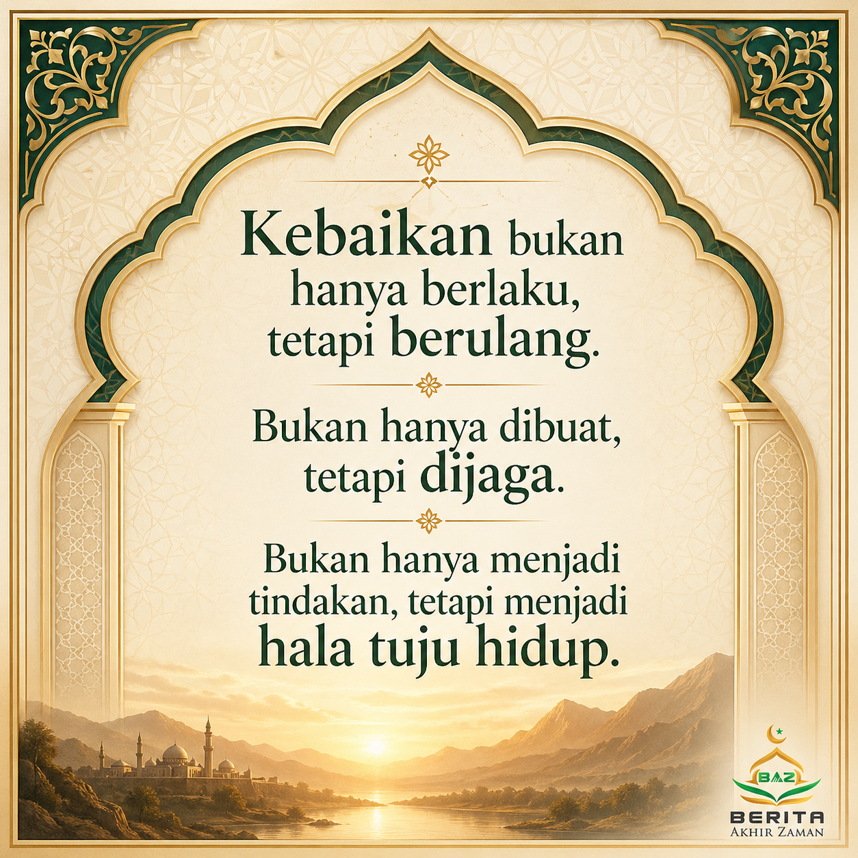 Kebaikan bukan hanya berlaku, tetapi berulang. Bukan hanya dibuat, tetapi dijaga. Bukan hanya menjadi tindakan, tetapi menjadi hala tuju hidup.